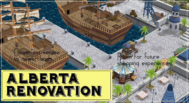 The peaceful port city of Alberta has expanded on our Renewal Chaos server. The small docks in old Alberta have been replaced with new berths for two new ships. There is also a new marketplace area that will be updated with some new shops soon.
