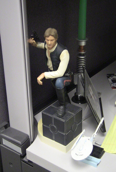 Star Wars and Star Trek on one desk, evil! I got yelled at once for having Star Trek and Star wars DVDs next to each other in my media shelf.